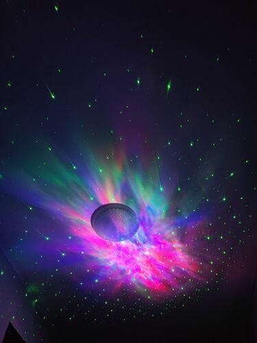 🌌 Stunning Nebula Effects and Twinkling Stars: This night light projector boasts 7 stunning nebula effects that dance alongside twinkling green stars. When projected onto your wall or ceiling, it transforms your space into a colorful galaxy, enveloping you in a tranquil and serene atmosphere. It's like traveling through the cosmos without leaving your room.